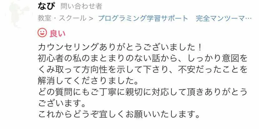 基本的な事や方向性や操作についてはサポートいたします。ソースのレビューなどはレッスンにてお願いします。